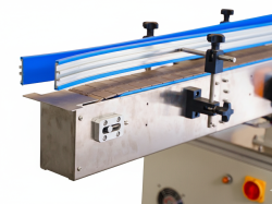 Автоматическая напольная машина для горизонтальной наклейки этикеток на цилиндрическую тару. Позволяет выполнять как частичное, так и полное обертывание бутылок по окружности. Оборудование спроектировано для работы в составе производственных линий, обеспечивая бесперебойную маркировку на высоких скоростях. Технические характеристики: • Скорость работы: 40–60 шт. /мин • Диаметр бутылок: Φ20–110 мм • Высота бутылок: 20–230 мм • Максимальная длина этикетки: 310 мм • Габариты (Д×Ш×В): 2150×1100×1300 мм • Масса машины: около 210 кг • Питание: 220 В, 50/60 Гц Модификации Датер с риббоном Позволяет в один цикл с наклейкой этикетки наносить четкую информацию о дате выпуска, номере партии или сроке годности. Ширина риббона: 30 мм, что позволяет разместить до 3 строк текста. Качество: Метод горячего тиснения обеспечивает высокую стойкость краски — оттиск не смазывается и устойчив к влаге. Экономичность: Стандартная ширина ленты (30 мм) делает расходные материалы доступными и легкозаменяемыми. Датчик прозрачной этикетки (ультразвуковой) Стандартные оптические датчики не «видят» прозрачную пленку на подложке. Данная модификация решает эту проблему. Технология: Ультразвуковой датчик реагирует на изменение плотности материала, а не на его прозрачность. Возможности: Позволяет использовать современные прозрачные этикетки (эффект «печати на стекле») без сбоев в позиционировании и остановки оборудования. Высота Аппликатора и Узла обкатки Конструкция оборудования предусматривает возможность адаптации под различные форматы продукции. Высота аппликатора и сопутствующего узла обкатки является вариативной и настраивается исходя из максимальной ширины используемой этикетки. Доступные варианты исполнения: Для обеспечения стабильного нанесения и качественной фиксации этикеток разного формата, узлы могут быть изготовлены в следующих типоразмерах: 180 мм — стандартное исполнение для большинства типов тары; 230 мм — расширенное исполнение для высокой этикетки; 260 мм — усиленное исполнение для крупногабаритной продукции и максимально широких этикеток. Ширина конвейера Ширина конвейерной линии может быть адаптирована под специфику тары заказчика для обеспечения максимальной устойчивости продукции при перемещении. В основе конструкции используется надежная цепь из полиацеталя (POM), обладающая низким коэффициентом трения и высокой износостойкостью. Доступные варианты ширины полотна: 82,5 мм — для компактной и узкой тары; 100 мм — универсальное стандартное исполнение; 150 мм / 190 мм — для тары среднего объема и неустойчивых флаконов; 250 мм — усиленное широкое полотно для крупногабаритных объектов Длина конвейера В стандартной комплектации оборудование оснащается конвейером длиной 2000 мм, что является оптимальным для большинства производственных задач. Индивидуальные решения: При необходимости интеграции в сложные технологические цепочки или при специфических требованиях к подаче продукции, возможно изготовление конвейера увеличенной длины. Параметры и конструктивные особенности таких решений согласовываются в индивидуальном порядке с техническим отделом. Высота конвейера от пола Оборудование проектируется с учетом эргономики и требований существующих производственных линий заказчика. Высота транспортной системы от уровня пола гибко настр