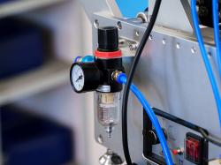 Данная настольная установка является профессиональным решением для автоматизации маркировки на производствах, где требуется безупречное качество нанесения. Компактные габариты в сочетании с промышленными компонентами позволяют легко работать со стеклянной, пластиковой и металлической тарой. Ключевые преимущества: Пневматическая фиксация: Надежный прижим тары осуществляется с помощью пневмоцилиндра, расположенного сверху. Это гарантирует стабильное положение флакона в процессе этикетирования, исключает его проскальзывание и обеспечивает идеально ровное нанесение даже на легкую или скользкую тару. Исключительная точность: Система позиционирования и качественные фотоэлектрические датчики обеспечивают точность нанесения этикетки с погрешностью не более ±0,5 мм. Безупречный внешний вид: Специальный разглаживающий механизм плотно прижимает этикетку, полностью устраняя риск появления пузырей воздуха или складок. Интуитивное управление: Сенсорный экран позволяет быстро менять настройки и сохранять параметры для разных типов продукции. Универсальность: Машина эффективно работает с широким диапазоном диаметров (от 10 до 150 мм), от миниатюрных косметических изделий до крупных емкостей. Тех. Харктеристики: Точность маркировки: ± 0,5 мм Скорость маркировки: 15-25 шт. /мин Применимый размер продукта (диаметр): 10-150 мм Применимый размер этикетки (длина): 15-380 мм Применимый размер этикетки (высота): 10-150 мм Давление воздуха: до 3 Бар Потребление воздуха: до 10 л/мин Общий вес: около 35 кг Вес после упаковки: около 55 кг Модификации: Датчик прозрачной этикетки (ультразвуковой) Стандартные оптические датчики не «видят» прозрачную пленку на подложке. Данная модификация решает эту проблему. Технология: Ультразвуковой датчик реагирует на изменение плотности материала, а не на его прозрачность. Возможности: Позволяет использовать современные прозрачные этикетки (эффект «печати на стекле») без сбоев в позиционировании и остановки оборудования. Датчик объекта Специализированный оптический датчик для определения наличия тары в зоне этикетирования. Автоматизация: Датчик фиксирует установку бутылки и запускает цикл наклеивания через выставленную задержку времени в панели управления. Стабильность: Минимизирует влияние человеческого фактора на скорость работы и исключает холостые срабатывания. Датер с риббоном Позволяет в один цикл с наклейкой этикетки наносить четкую информацию о дате выпуска, номере партии или сроке годности. Ширина риббона: 30 мм, что позволяет разместить до 3 строк текста. Качество: Метод горячего тиснения обеспечивает высокую стойкость краски — оттиск не смазывается и устойчив к влаге. Экономичность: Стандартная ширина ленты (30 мм) делает расходные материалы доступными и легкозаменяемыми.