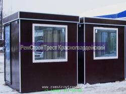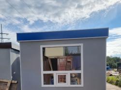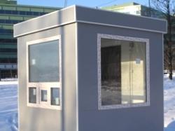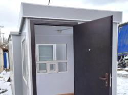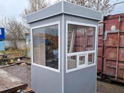Пост охраны размер 2х2 м, новый, цена эконом, хорошо утепленный, предлагаем купить для круглогодичного использования, производство РСТ Красногвардейский, окна пластиковые, стеклопакет 24мм, одно окно с форточкой, дверь металл, утепленная, заводская, коричневого цвета, снаружи металл с полимерным покрытием цвет серый, внутри панели ПВХ, пол фанера, линолеум, пластиковый плинтус, утепление минвата 100мм, электропроводка, двойная розетка, защитный автомат, светильник, внешняя коробка для подключения кабеля.